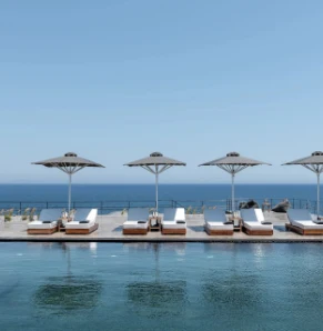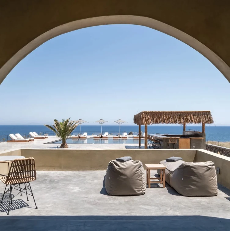 Colombos Beachfront, on Santorini’s Colombos Beach, is an enchanting retreat that offers ultimate relaxation in a spectacular, almost unreal landscape. Overlooking the endless blue of the Aegean Sea and the special volcanic coastline, it creates an atmosphere of tranquility and luxury. Omprela.gr was honored to partner with Colombos, helping to create a space that exudes elegance and comfort, offering guests an unforgettable experience in Santorini.