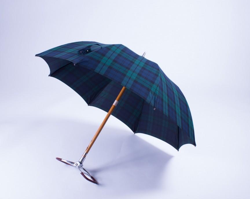 This clever design in a classic checkered pattern is not only for protection from the rain – it is also a convenient place for a sporting event! Queen Elizabeth has indeed become known to use this umbrella while watching the Equestrian Games in England. Maglia Francesco is a fifth generation company based in Milan that has built some of the best umbrellas in the world since 1854. Each model requires more than 70 stages of production and the family is said to be the ultimate true umbrella maker. The fabric is durable multi-cotton and the shaft is solid wood making it a durable solution for heavy rainfall. The nickel-plated brass seat folds out with a grafted edge, and at 35 “by 24” is large enough to protect you from the elements while it can easily fit in any golf bag.