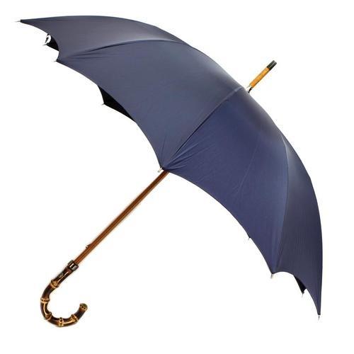 Burberry is the well-known British luxury brand known for these legendary checkered-inspired scarves, classic coats and of course umbrellas to conquer the typically rainy weather that is synonymous with England. The company was founded in 1856 and is considered to be the epitome of British high aesthetics. This elegant full-size umbrella is made of a “rain-guarantee” polyester and twill cotton. The unique nubuck ostrich leather handle has discreet details with a needle and the well-known open-close button on the umbrella with its strap, are also made of ostrich leather. This model is uniquely simple in its design, as it lacks the legendary checkered pattern associated with this company. However, this deep “college blue” is intricate and discreet – ideal for a conservative gentleman who prefers discreet quality over fancy display.