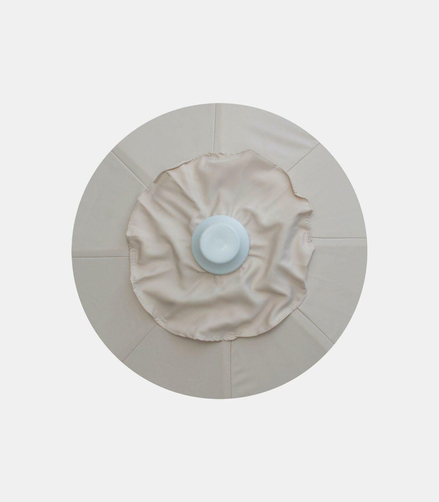 The screw-in aluminum pole helps ensure a stable assembly, while the opening mechanism remains practical for everyday use. The top vent helps release wind pressure, and the individual components have been selected to ensure durability in outdoor environments. The canopy fabric is made of 350 g polyester, with waterproofing and UV protection.