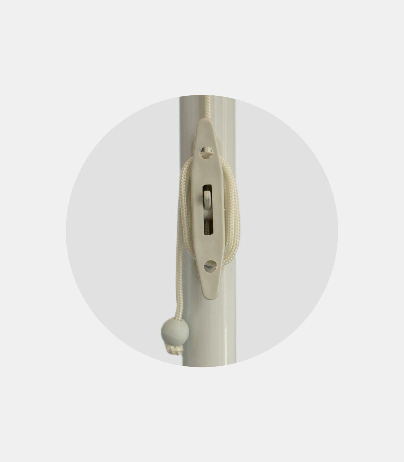 • White frame. Opens/closes with a single pulley and 3 tilt positions.