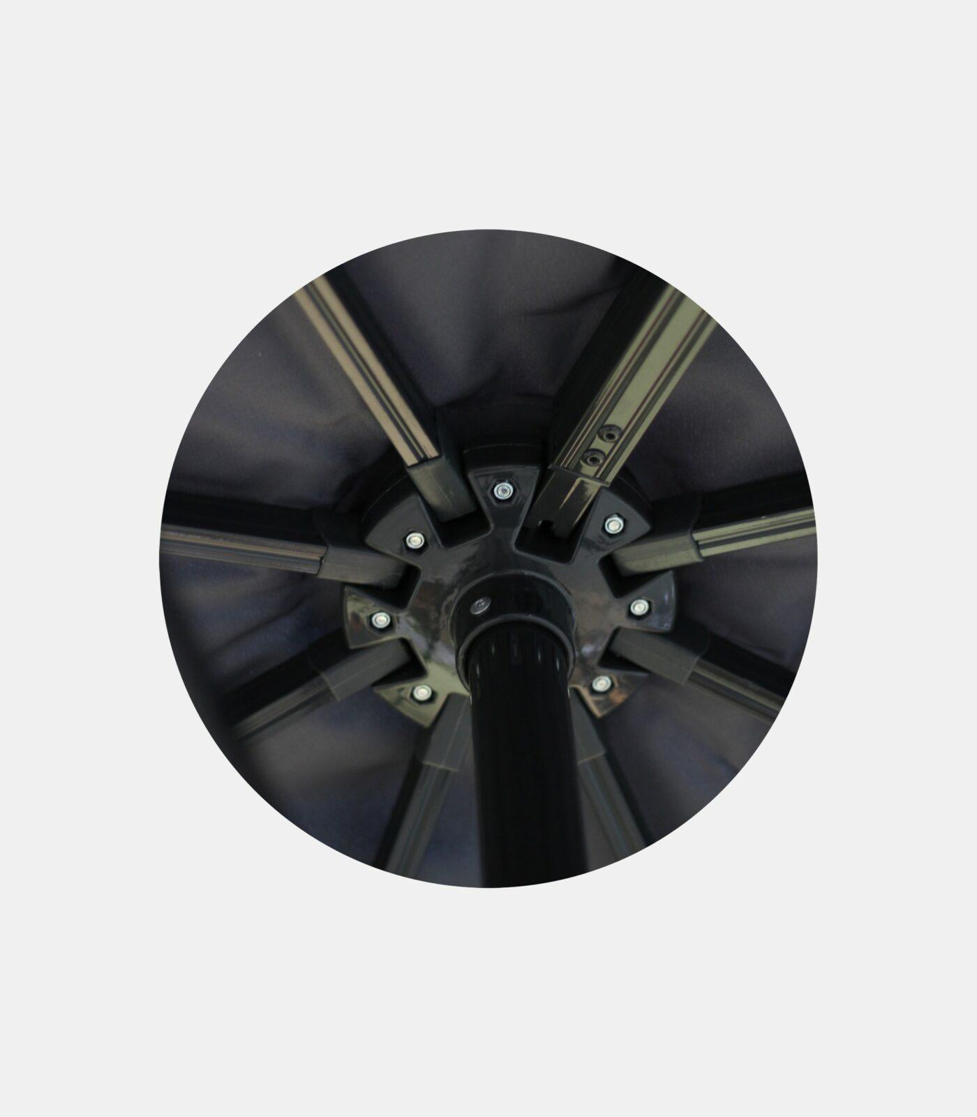 - Reinforced anthracite aluminum frame with 8 ribs