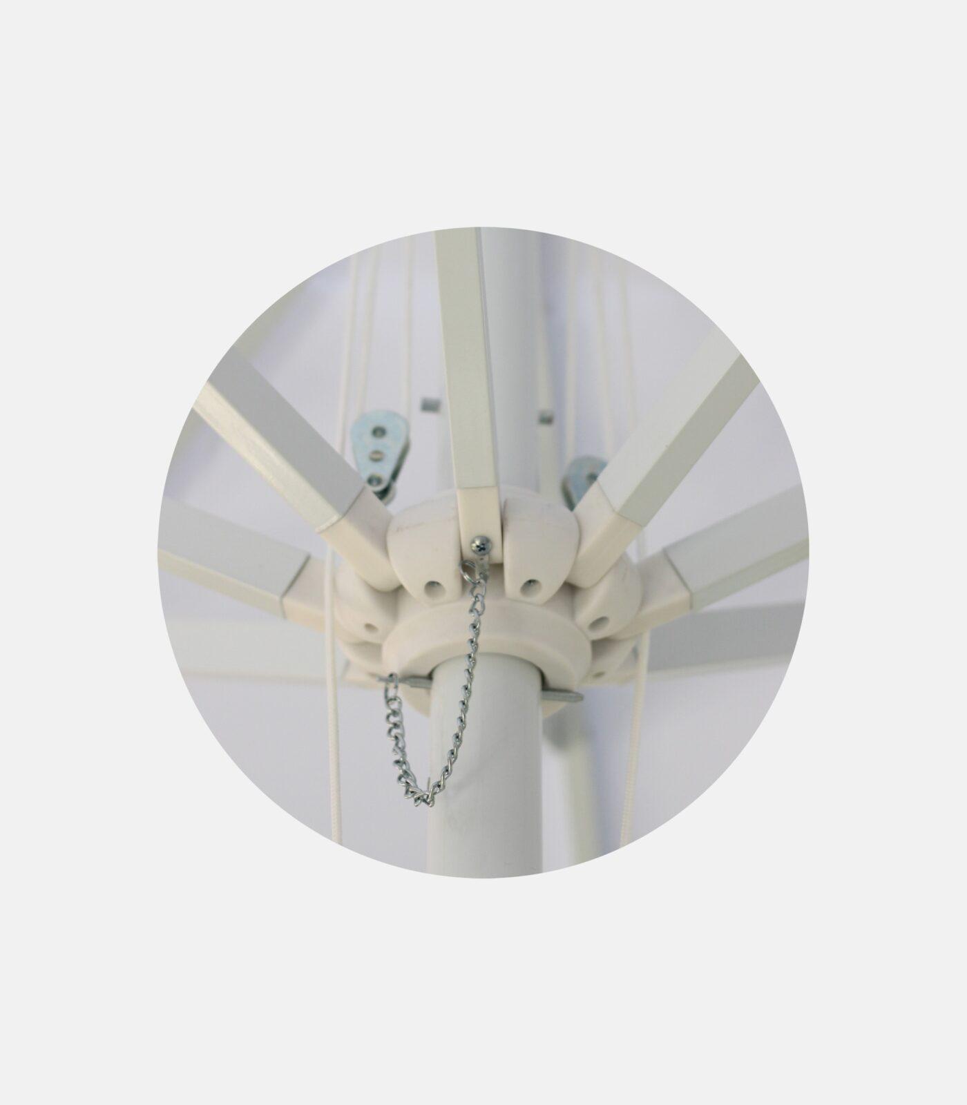 The white version delivers the cleanest, brightest look in the shade and highlights the umbrella’s “neat” geometry. It’s a timeless choice for professional spaces that want a premium result, without unnecessary showiness.