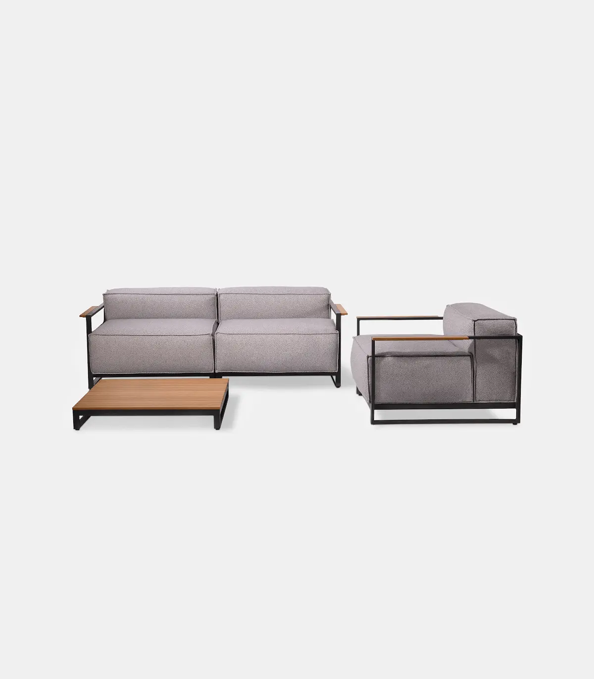 The S-11 is an anthracite powder-coated aluminum lounge set with a clean minimal look that elevates hospitality spaces. Its modular design supports multiple layouts, making it easy to adapt to lounge corners, beach clubs, or pool areas. Teak details add a warm natural accent, while the exceptionally thick cushions (up to 37 cm) deliver a true day-lounge comfort experience.