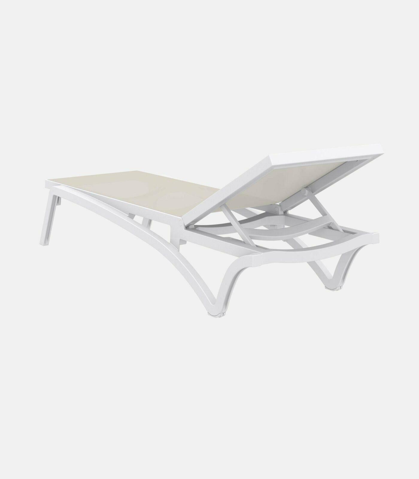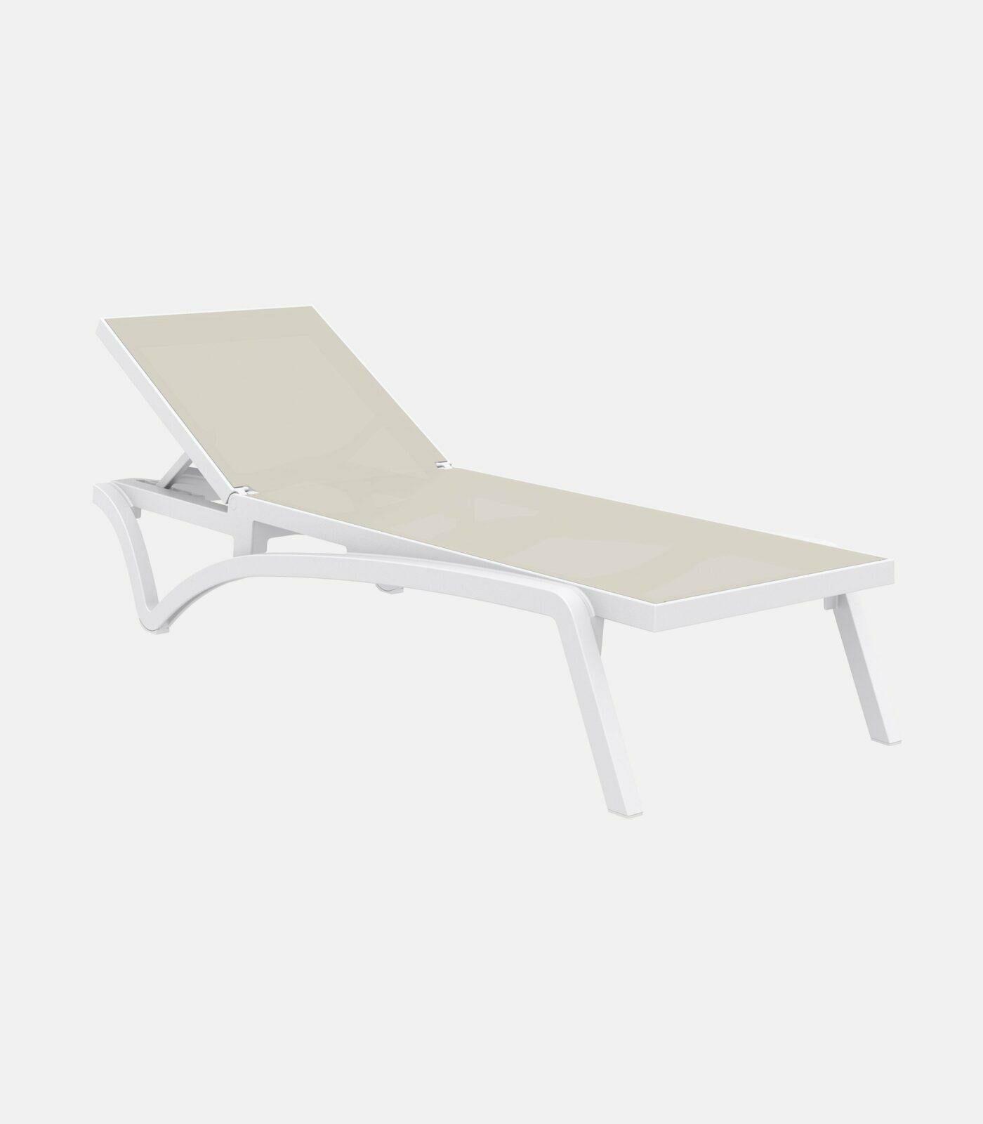 At Omprela, you will find the Meleti plastic sun lounger in white, beige, blue, light blue, yellow, black, and gray colors. Dimensions: 193L x 68W x 35H cm.