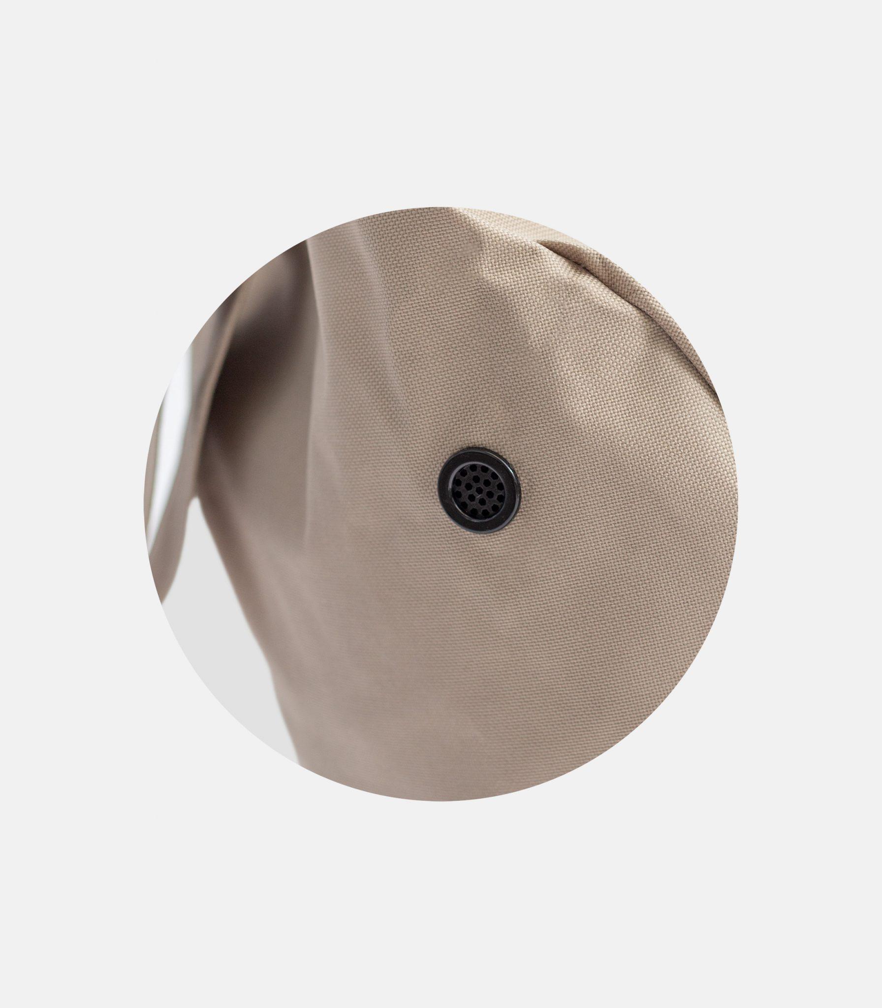 • Plastic side air vents allow the poufs to “breathe” and release the internal air, maintaining the required flexibility so they quickly adapt to your shape without putting pressure on the seams.