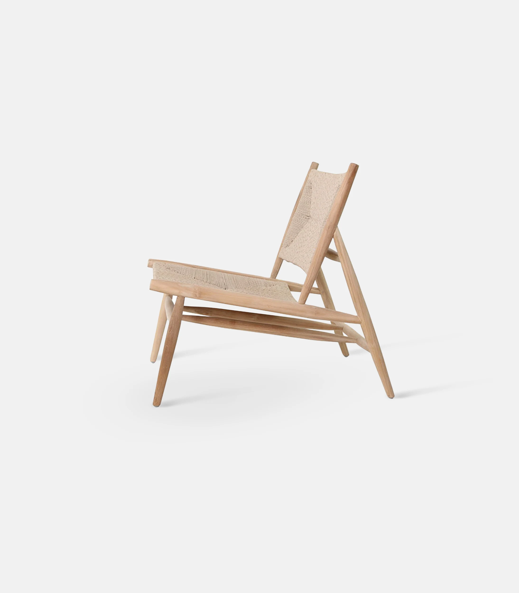 Professional teak armchair with woven natural rope in natural shade, for hotels and beach bars.