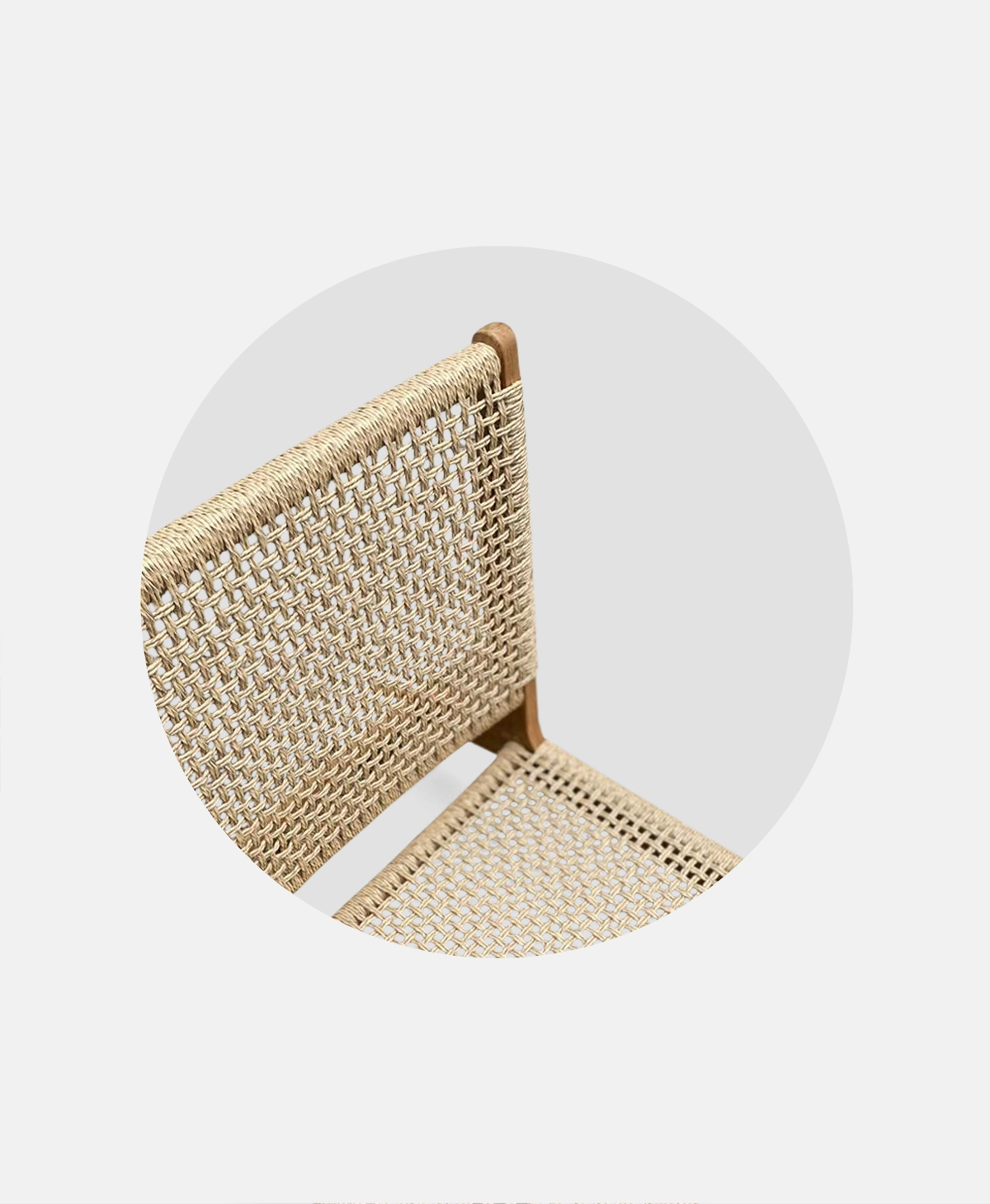 - Seat/back woven with natural outdoor rope