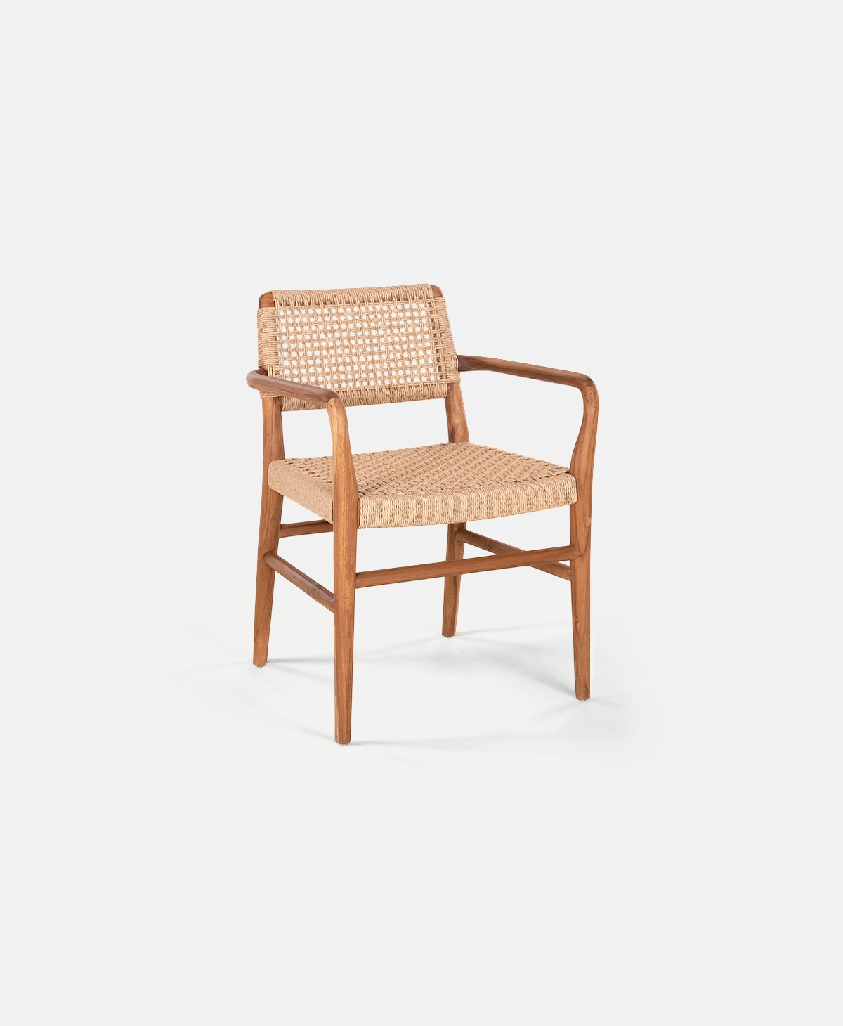The PW-19 armchair is a natural, resort-style choice for professional hospitality settings. Its solid teak frame is paired with beige VIRO rope on the seat and backrest, offering comfort and a lightweight visual appeal. Featuring armrests for enhanced support and a robust construction, it is ideal for hotels, beach bars, pool bars, and dining areas.