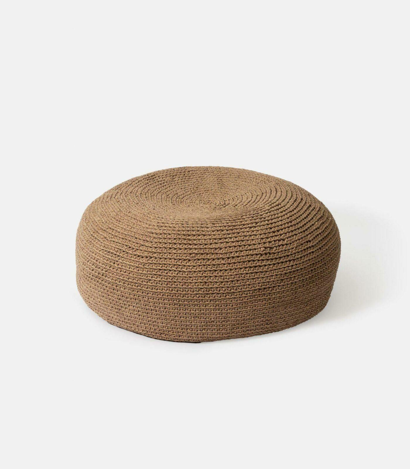 • Knitted pouf made from high-quality eco-friendly rope, waterproof and UV-protected.