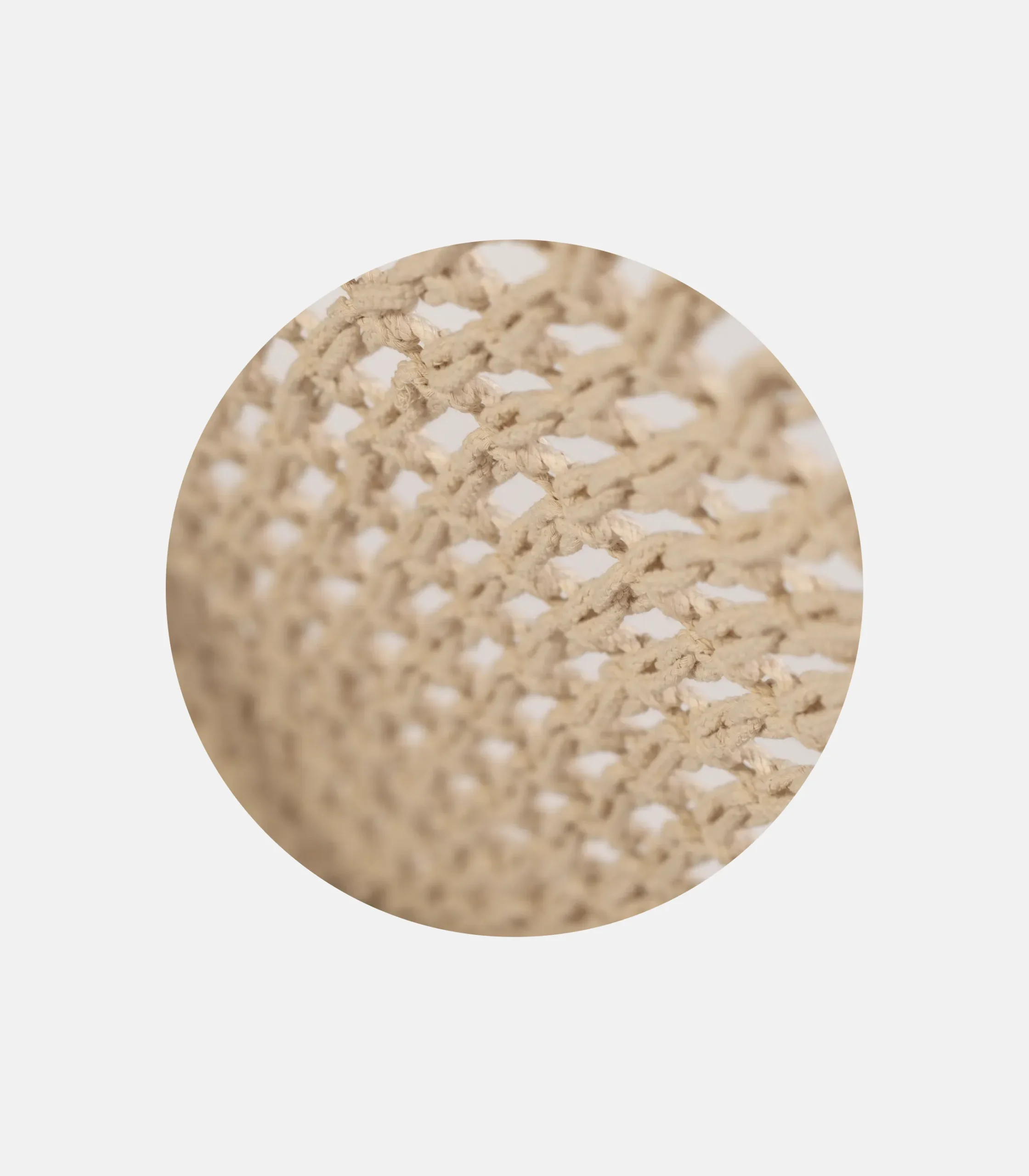 The cream square version blends seamlessly with hotel decks and beach bars seeking a bright aesthetic. The hand-woven texture with fringes offers the feel of natural material, but with a neater, more tailored presence.