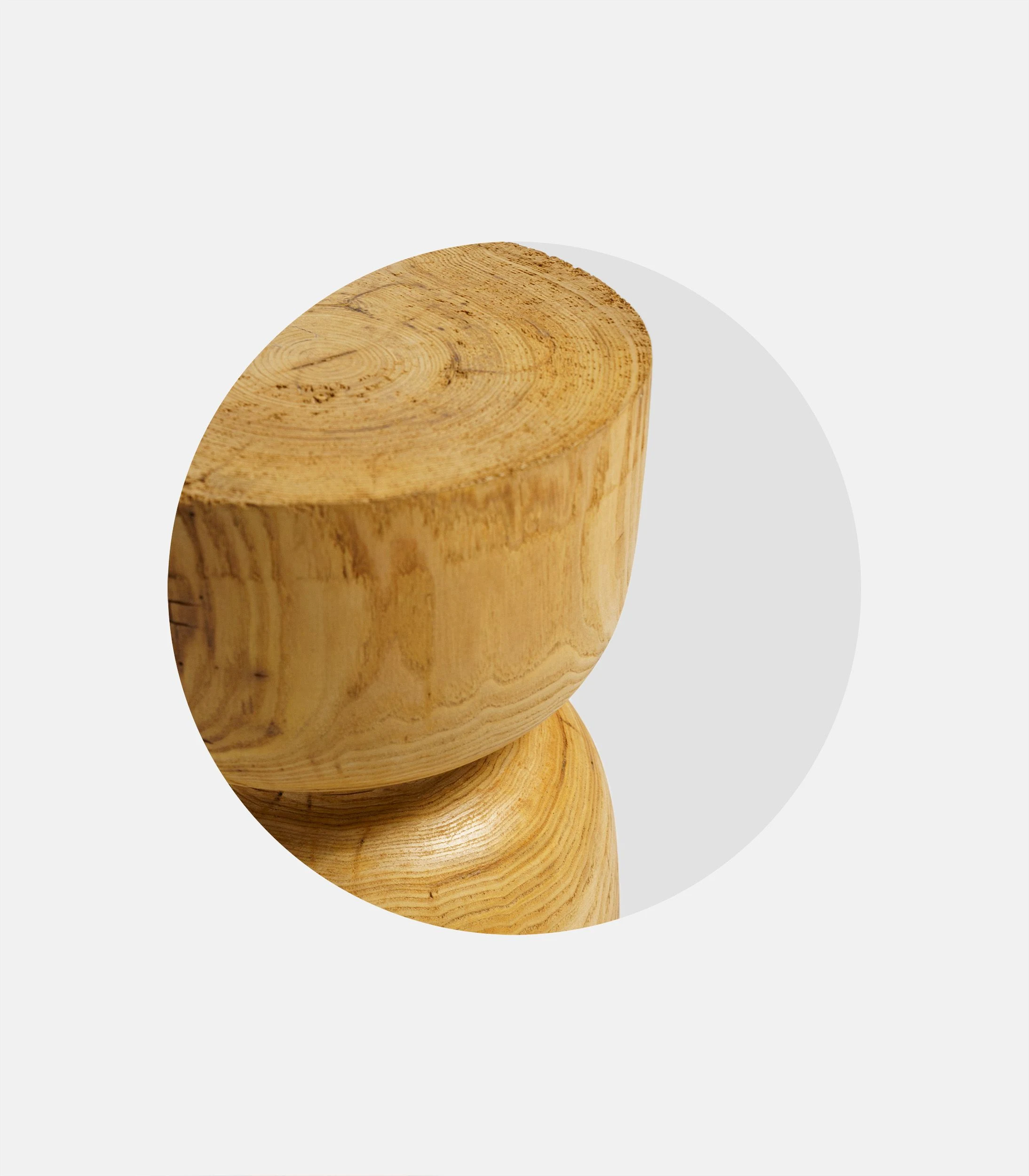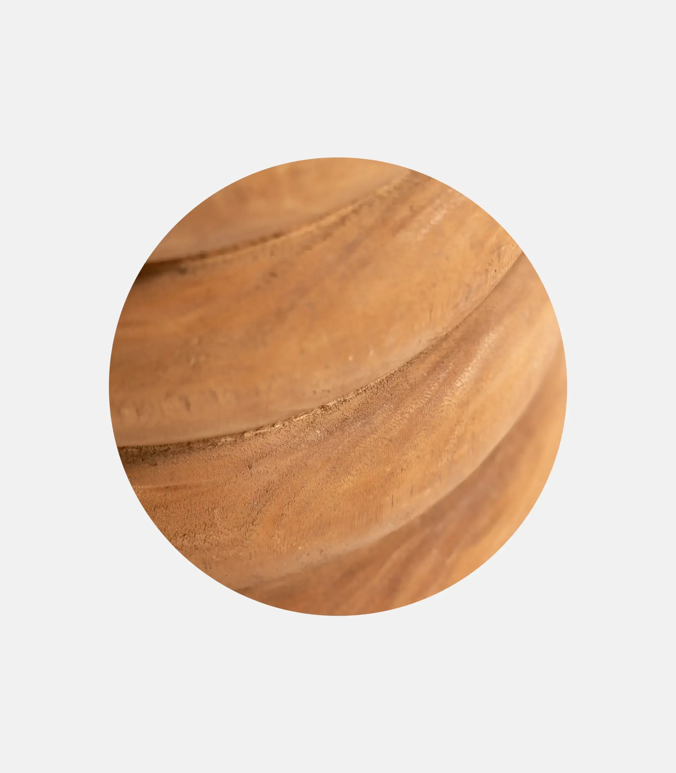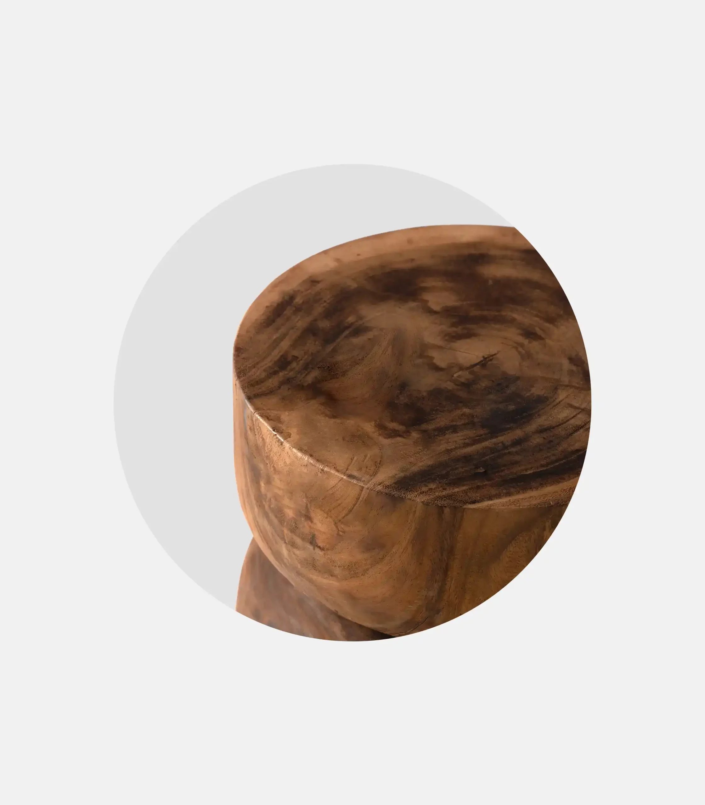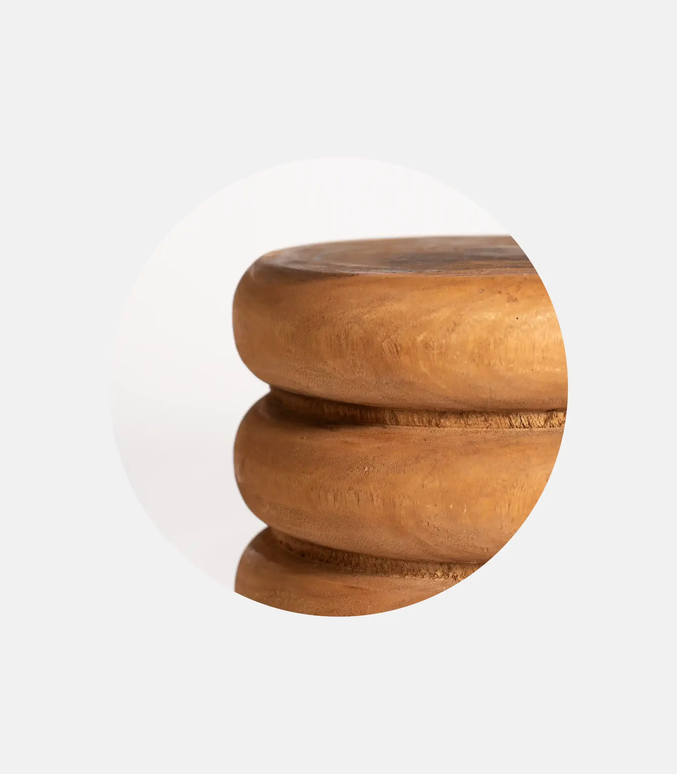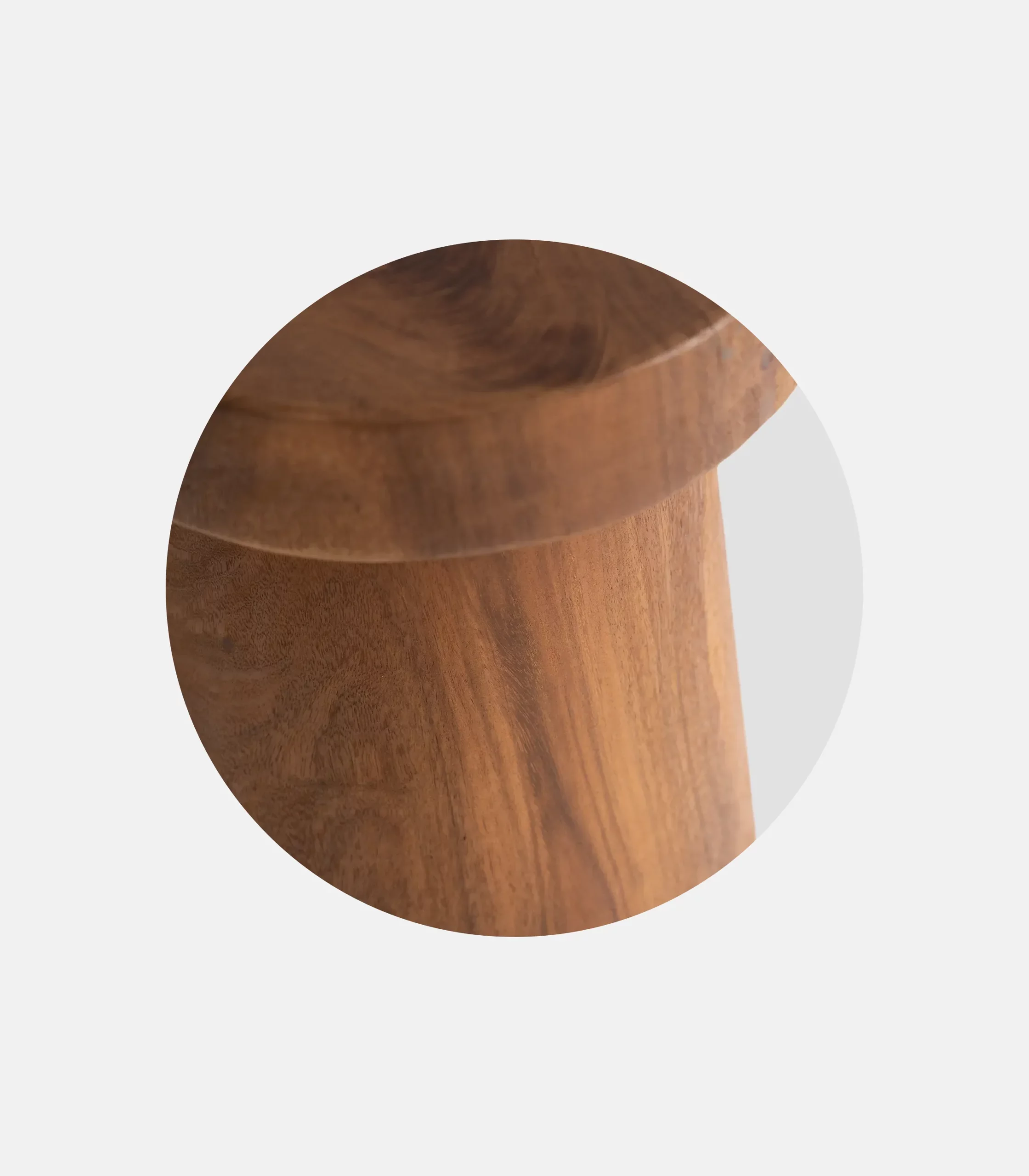 Crafted from tropical suar wood, featuring natural grain that makes each piece feel unique without being overstated. The turning gives it clean geometry and a proper feel as a seat, while the solid wood mass keeps it sturdy for daily use. Small variations in appearance (grain/knots) are part of the material’s character, not an imperfection.