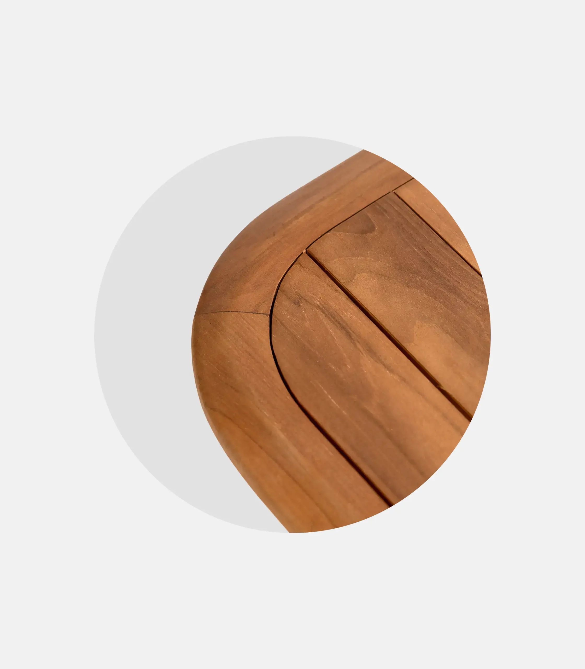 Suar is a natural material affected by changes in temperature and humidity. Due to its high moisture content, condensation may appear on the surface during transport, which might leave marks or imperfections. However, this moisture tends to evaporate over time, while potential surface alterations can lead to staining. It is recommended to avoid placing this specific wood directly onto carpets or fabrics.