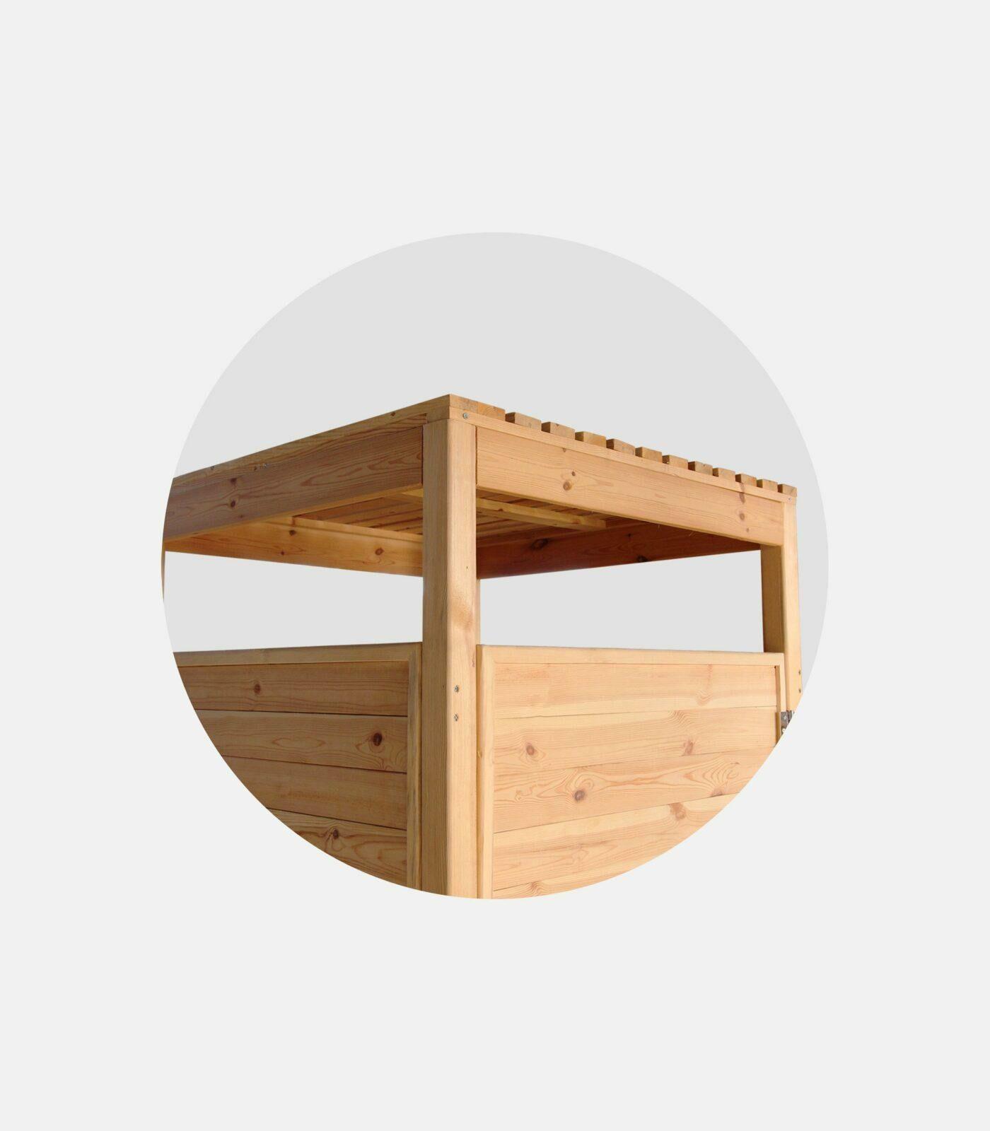- All sides made of rebated 2cm thick wood, along with wooden floor and roof
