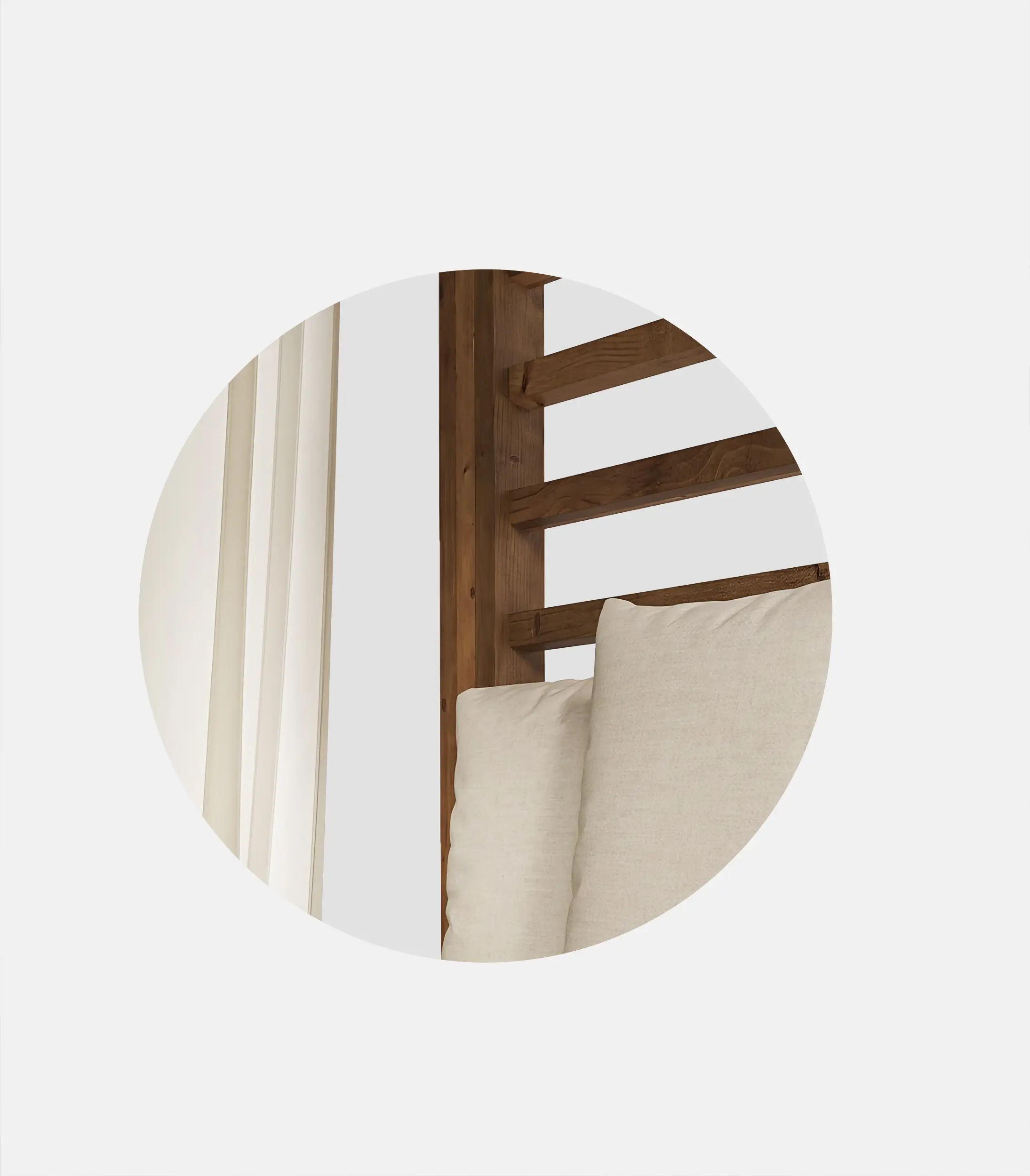 The Ekali follows the same philosophy: natural character, privacy with curtains and proper shading, in daybed form that sets up a complete relaxation zone.