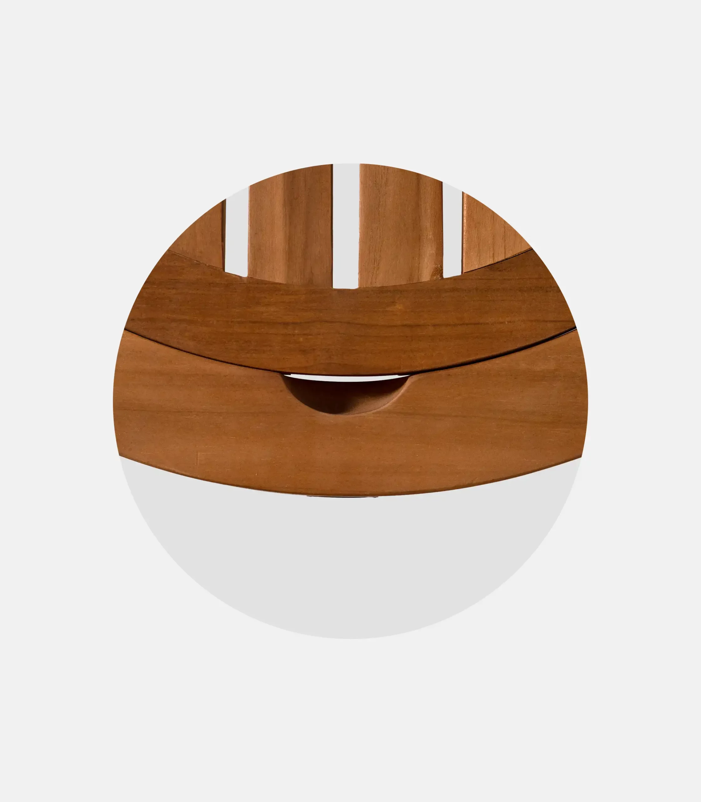 The “Oval” is a statement piece: heavy-duty feel and distinctive oval design that visually sets the space apart. Handcrafted from solid tropical teak wood with impregnation finish, designed for professional use.