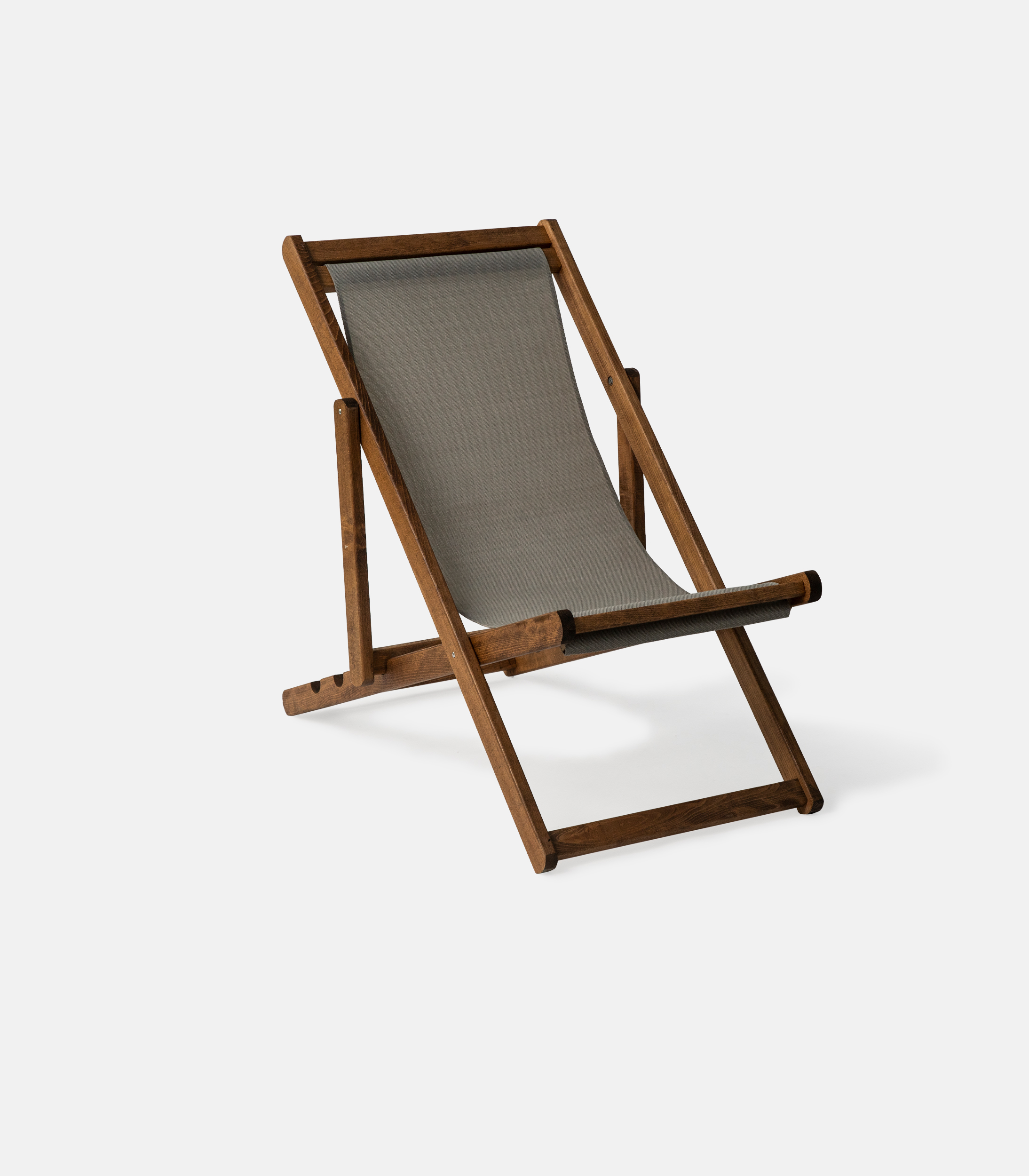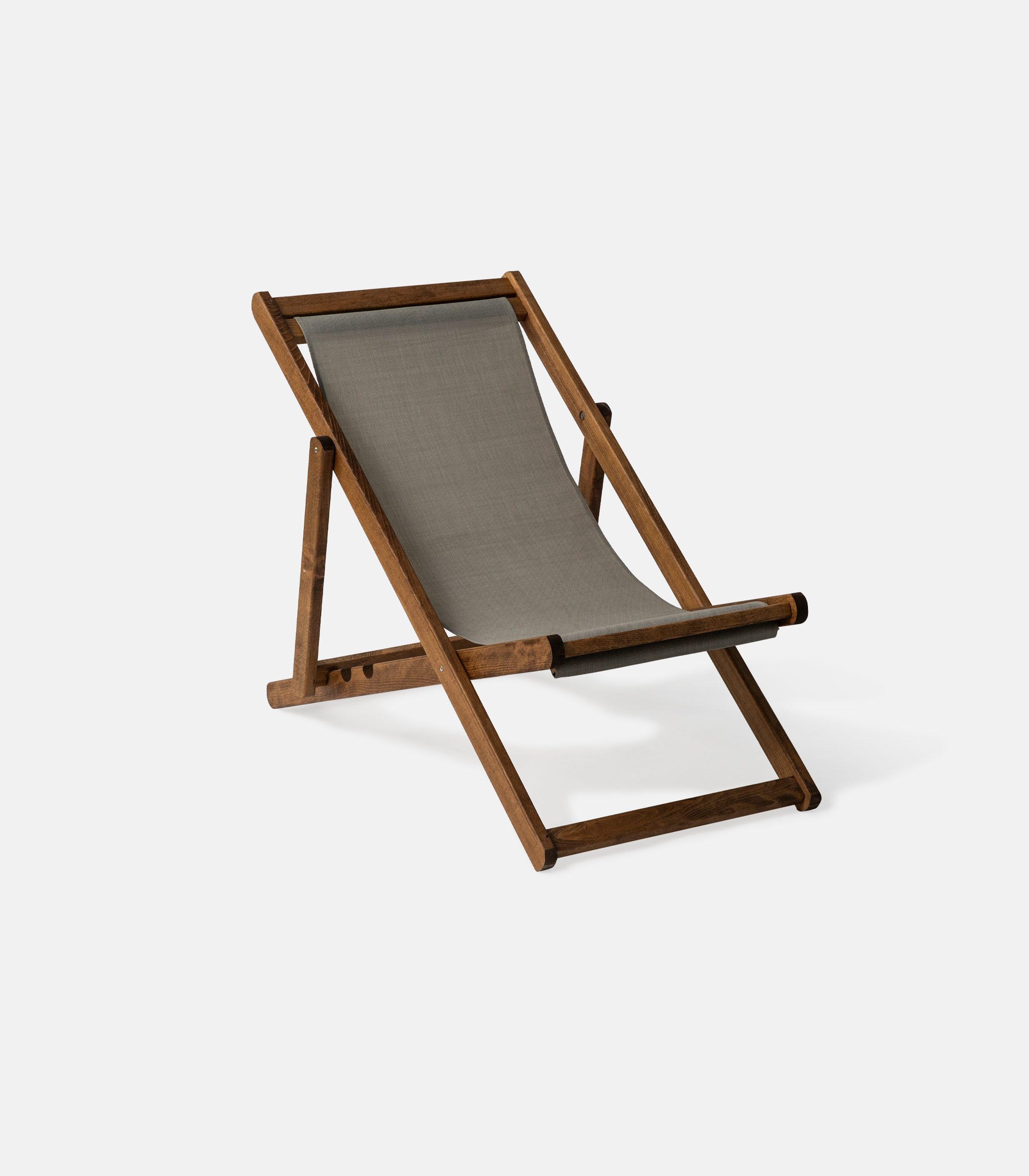 The sand shade blends naturally with seaside aesthetics and keeps the overall look mild and bright. The sunlounger is made of kiln-dried beech, accepts perforated PVC or awning fabric, and features 4 reclining positions. It has a calm appearance, but the construction remains solid and professional.