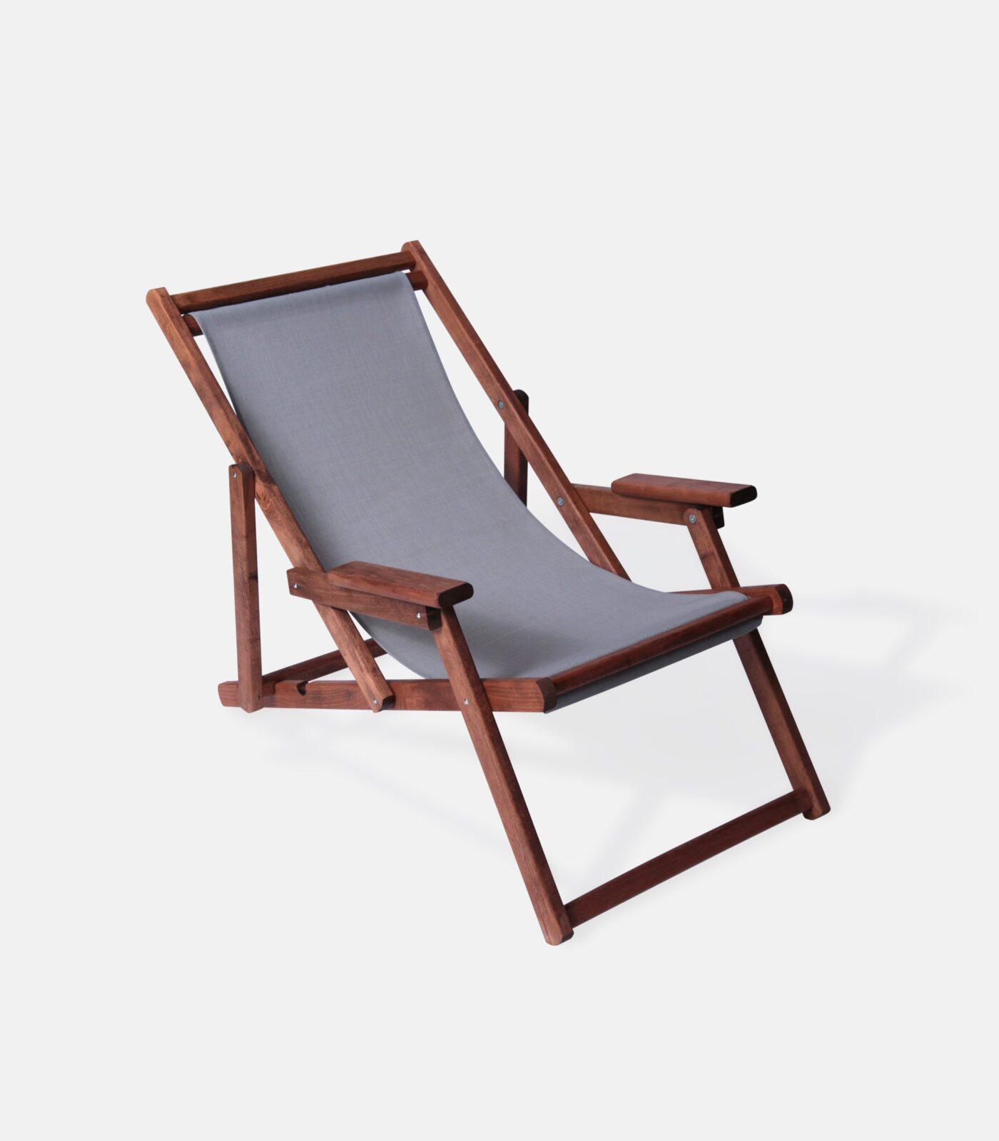 The gray version offers a more modern, urban take on a classic wooden sunlounger. Kiln-dried beech provides the structure’s body, while perforated PVC ensures functionality for outdoor environments. With 3 reclining positions, it remains comfortable and practical without losing its refined look.