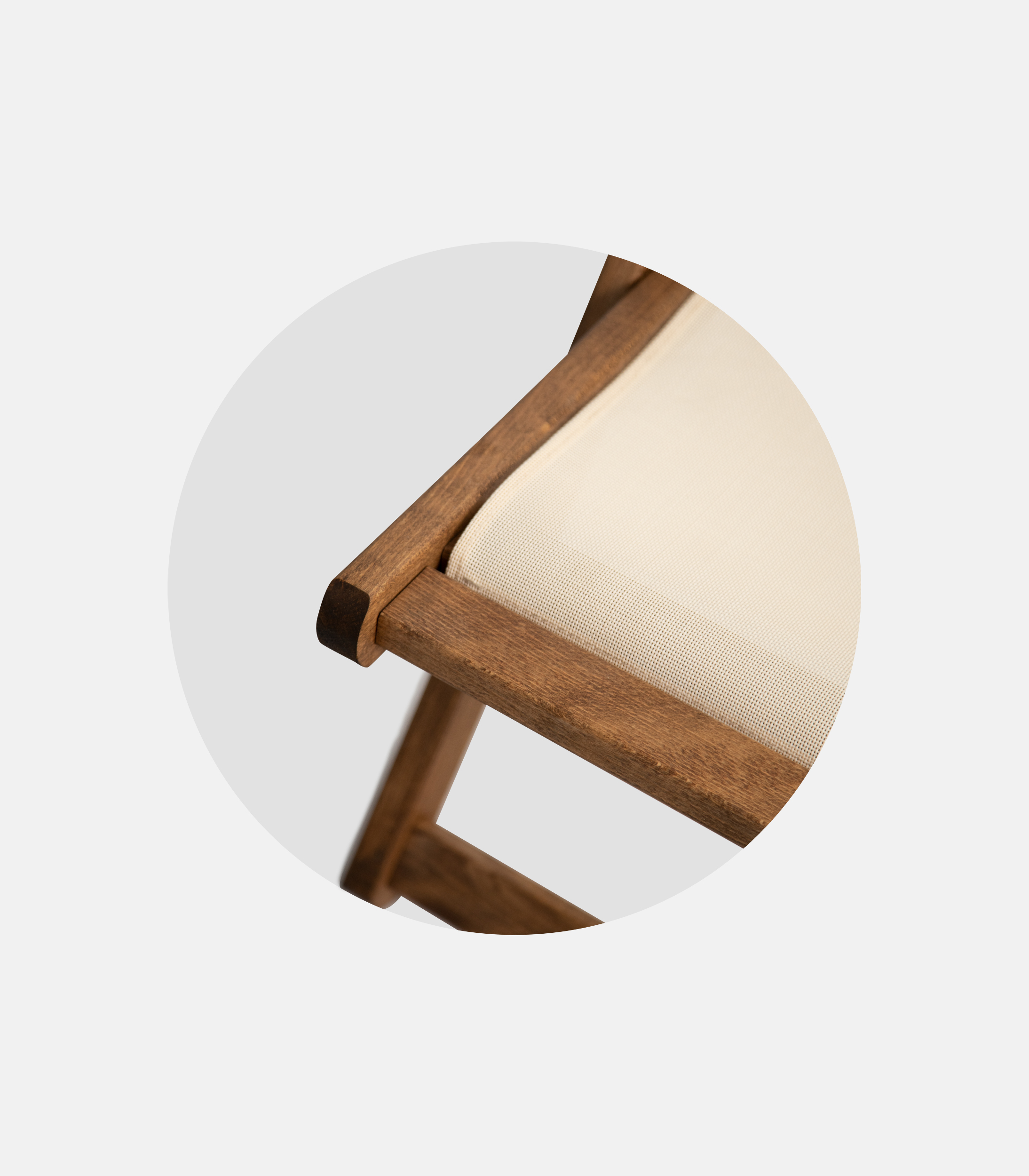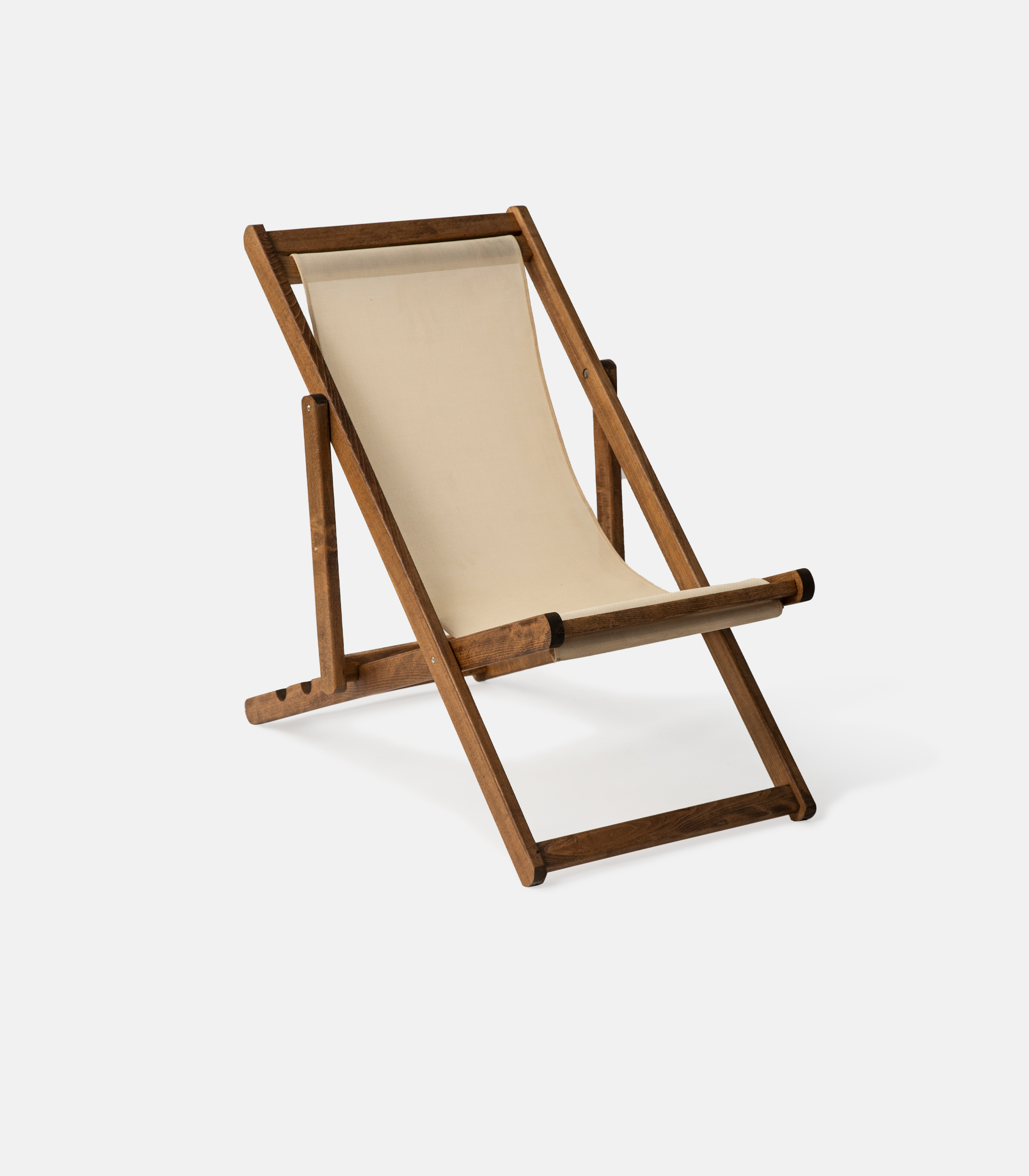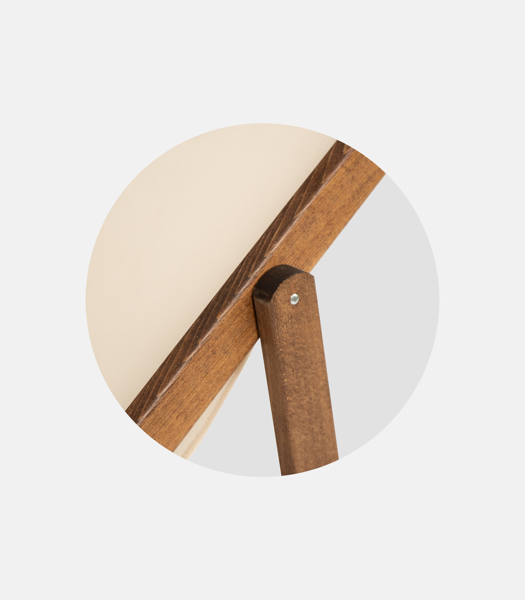 The sand shade blends naturally with seaside aesthetics and keeps the overall look mild and bright. The sunlounger is made of kiln-dried beech, accepts perforated PVC or awning fabric, and features 3 reclining positions. It has a calm appearance, but the construction remains solid and professional.