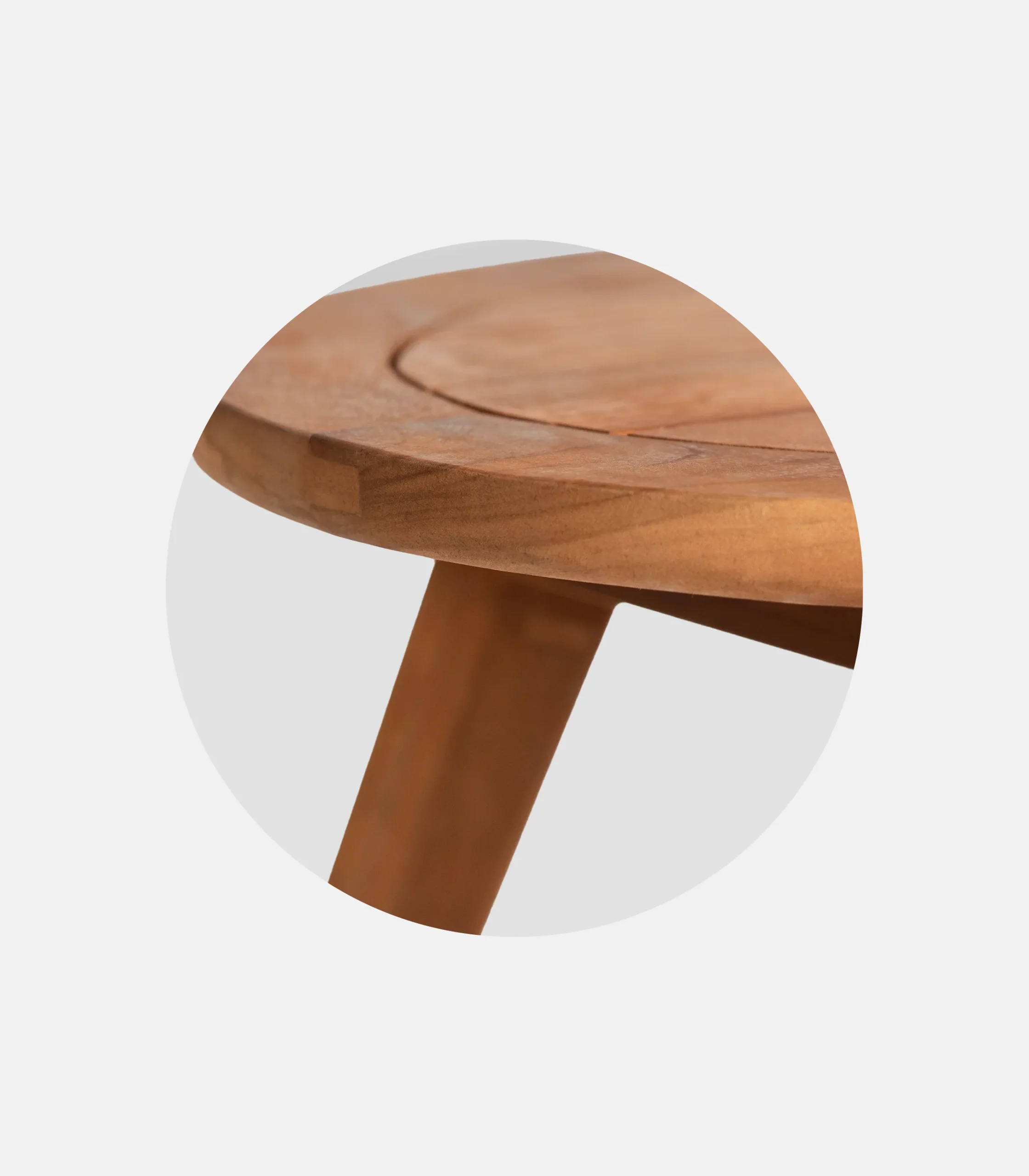 Oval shape, handcrafted construction, and teak as the base material: a combination that looks refined from a distance and feels right up close. Its curved line makes it more inviting beside sun loungers, without corners that visually weigh it down. Ideal when you want to maintain a more premium, organic aesthetic.