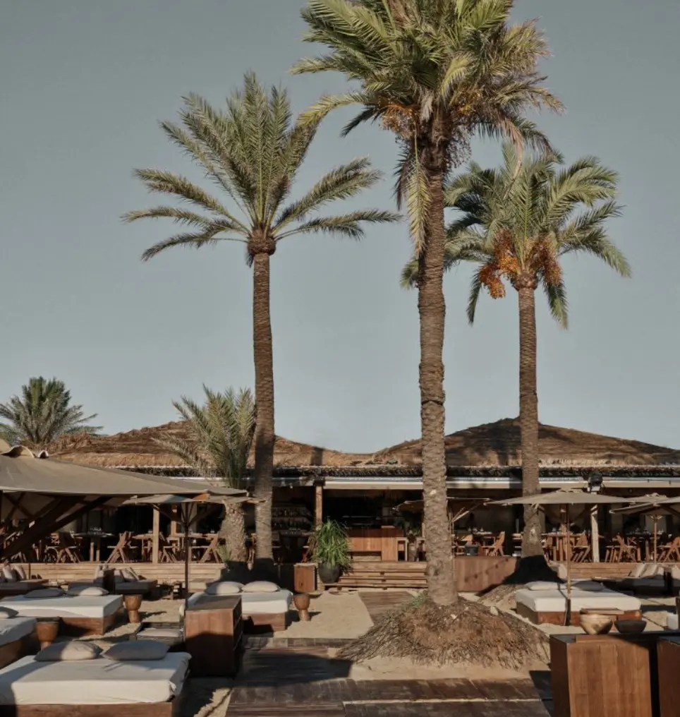 ψάθινες ομπρέλες παραλίας, ξύλινες ξαπλώστρες παραλίας και αλουμινίου, ξύλινoι διάδρομοι παραλίας, εξοπλισμός beach bar