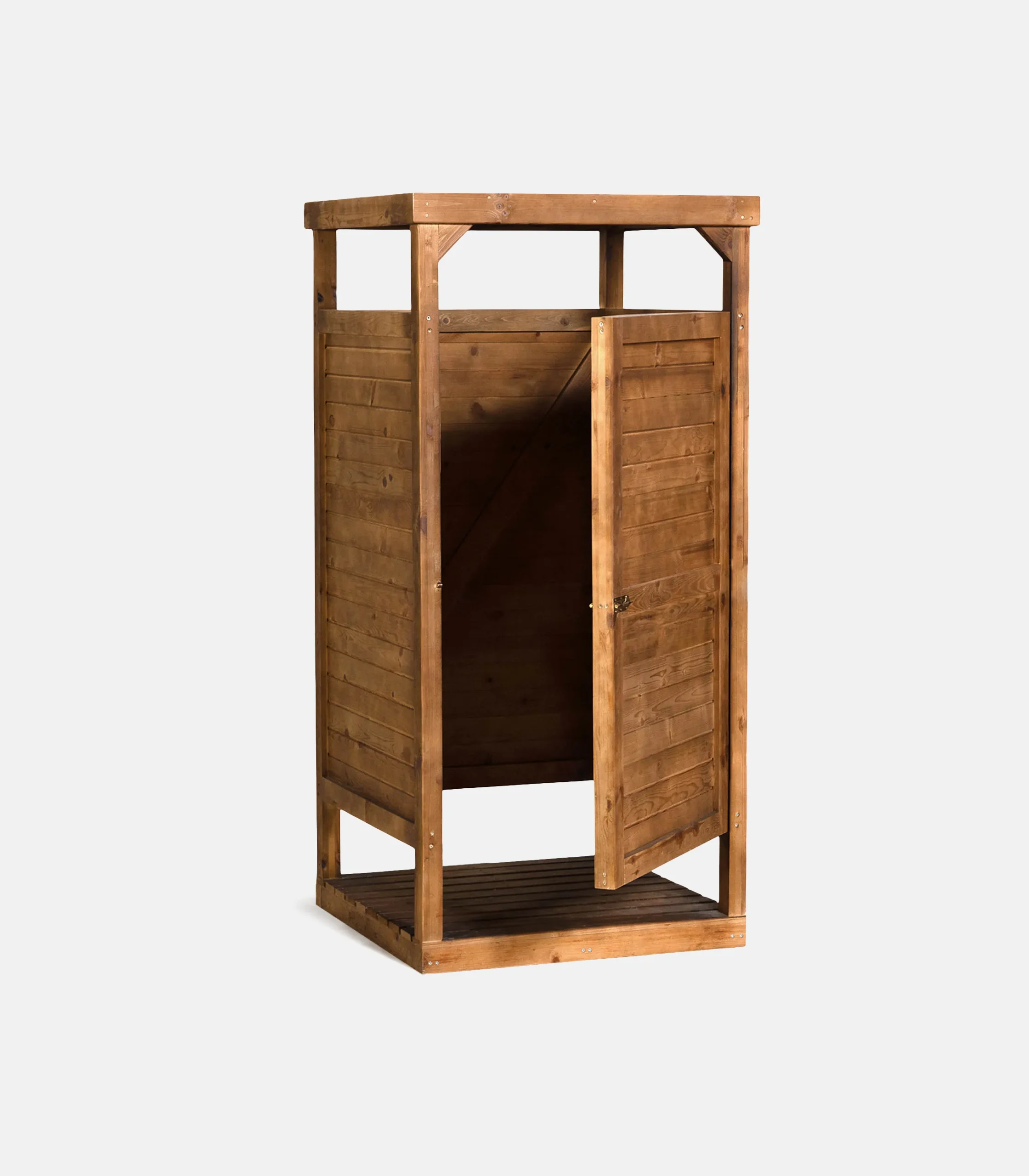 Το ξύλινο αποδυτήριο/καμπίνα παραλίας είναι μια ολοκληρωμένη λύση για οργανωμένες παραλίες και πισίνες, με καθαρή εικόνα και ουσιαστική προστασία του χρήστη. Η κατασκευή βασίζεται σε σταθερό σκελετό από σύνθετη (τρικολλητή) ξυλεία πεύκου, ώστε να προσφέρει μεγαλύτερη αντοχή στον χρόνο και μειωμένη πιθανότητα στρέβλωσης.