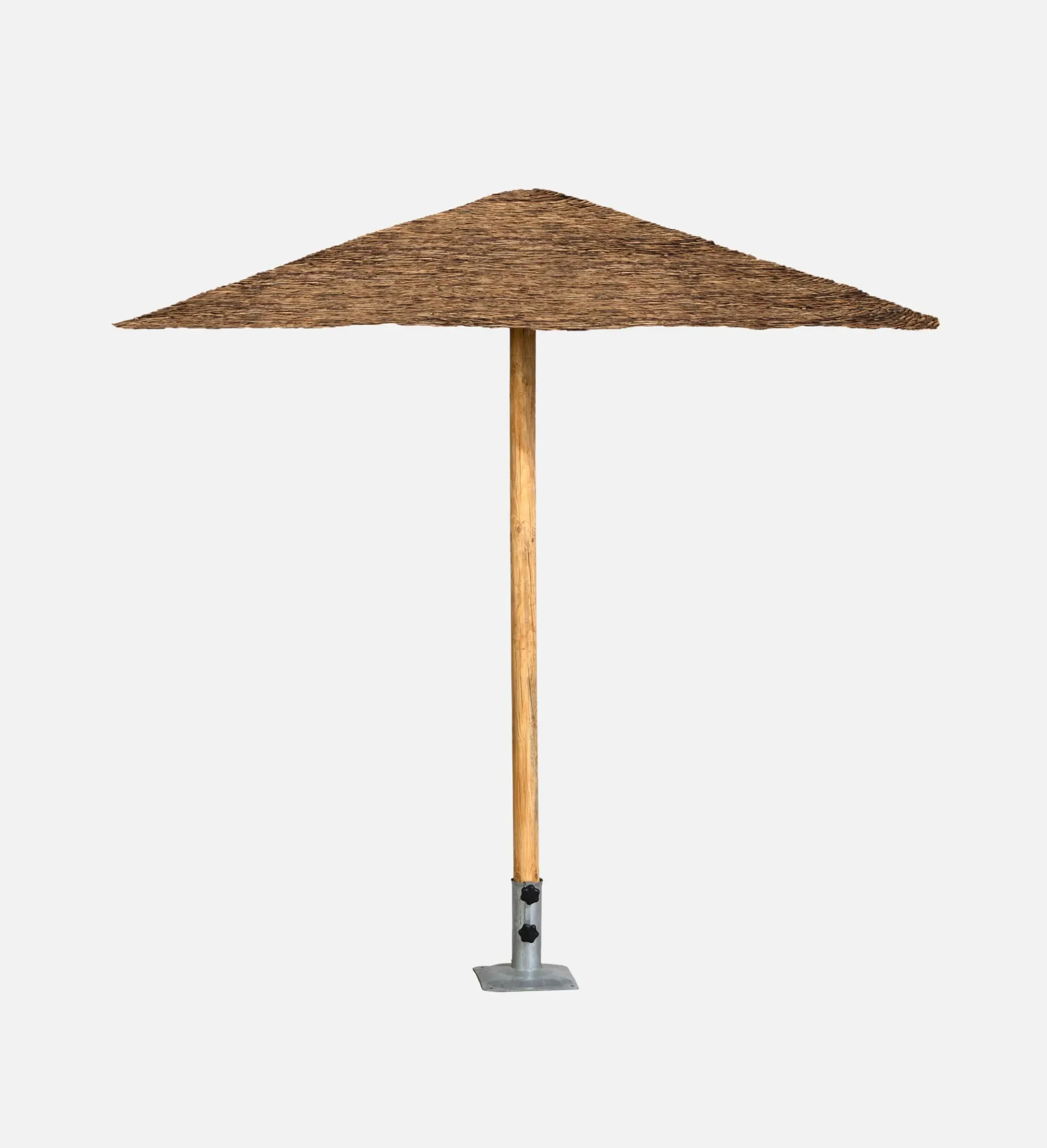 Regarding the tropical umbrellas, the canopy is usually made of straw cane or wicker. These materials offer great protection from the sun, in comparison to any synthetic material. Another great advantage, is that these material allow for the passing of air through the under side of the canopy, rendering the tropical umbrella extremely wind resistant, while offering a pleasurable coolness.